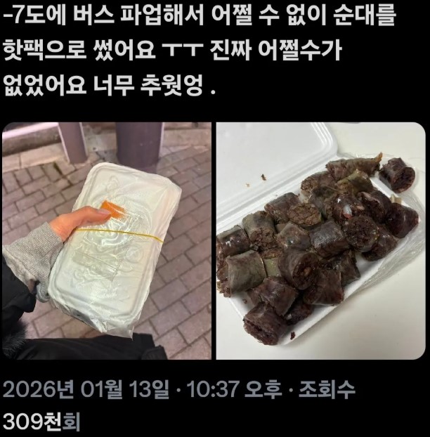 G 비회원 이슈 0 6 0 0 2시간전 너무 추워서 어쩔 수 없이 순대를 샀어요.jpg 위장을 따땃하게~~ ㅋㅋㅋㅋㅋ 출처 : https://m.bboom.naver.com/best/get?boardNo=9&postNo=4362486 0 0 이 글을 SNS로 공유하기