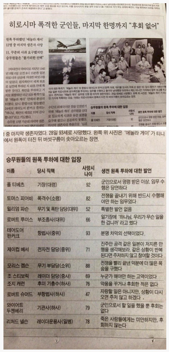 히로시마 폭격한 군인들