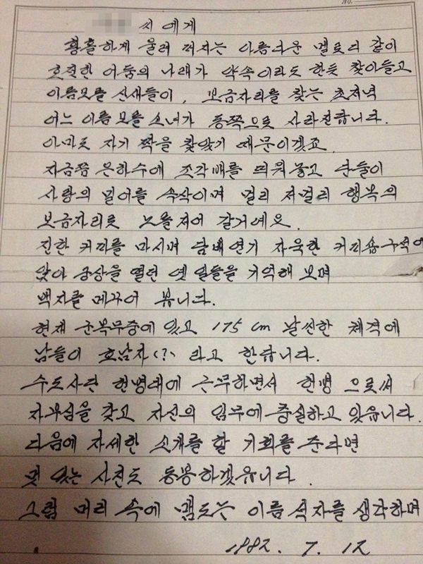 80년대에 군인이 호감있는 여자에게 쓴 편지