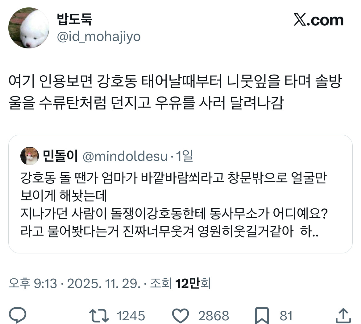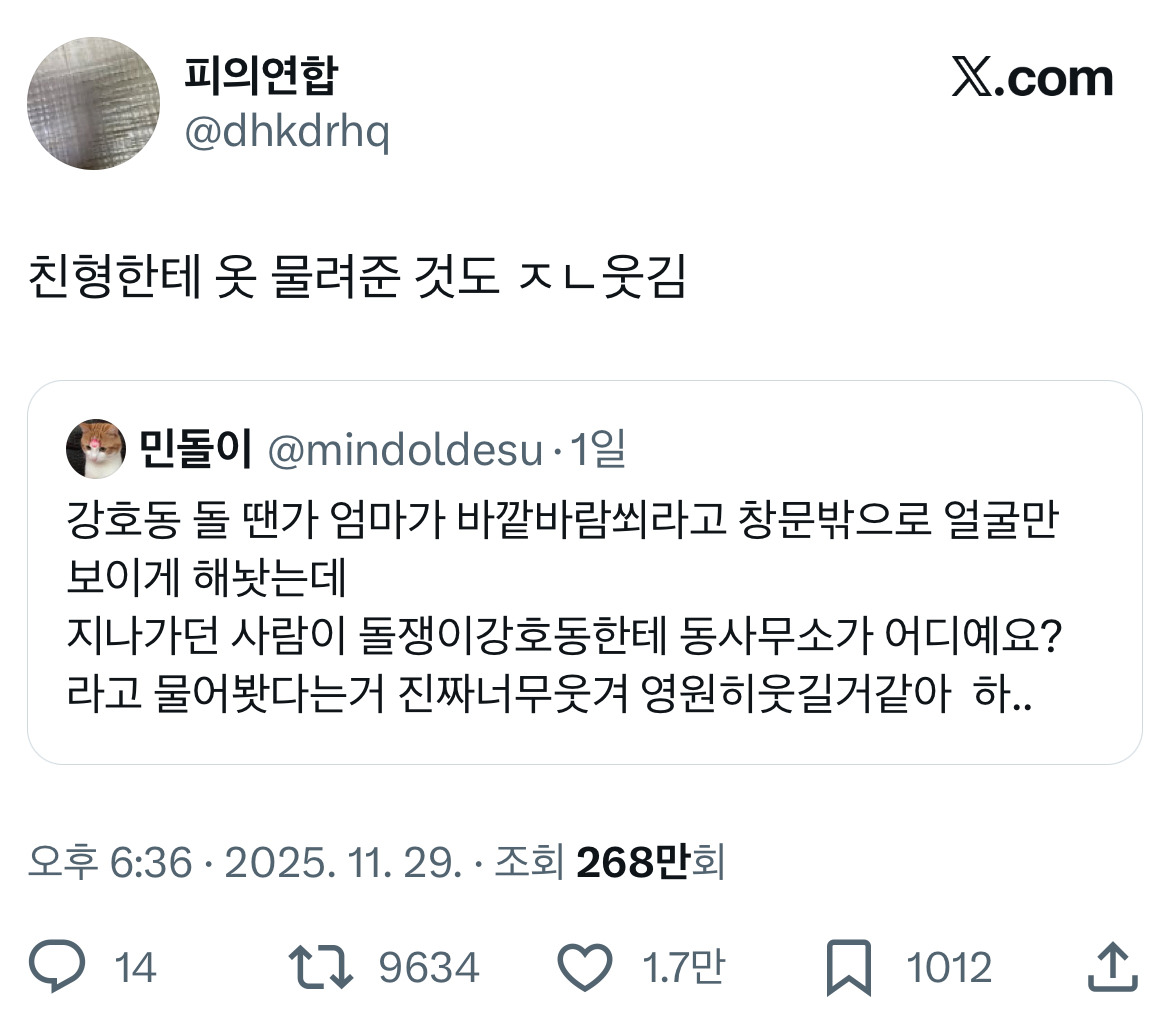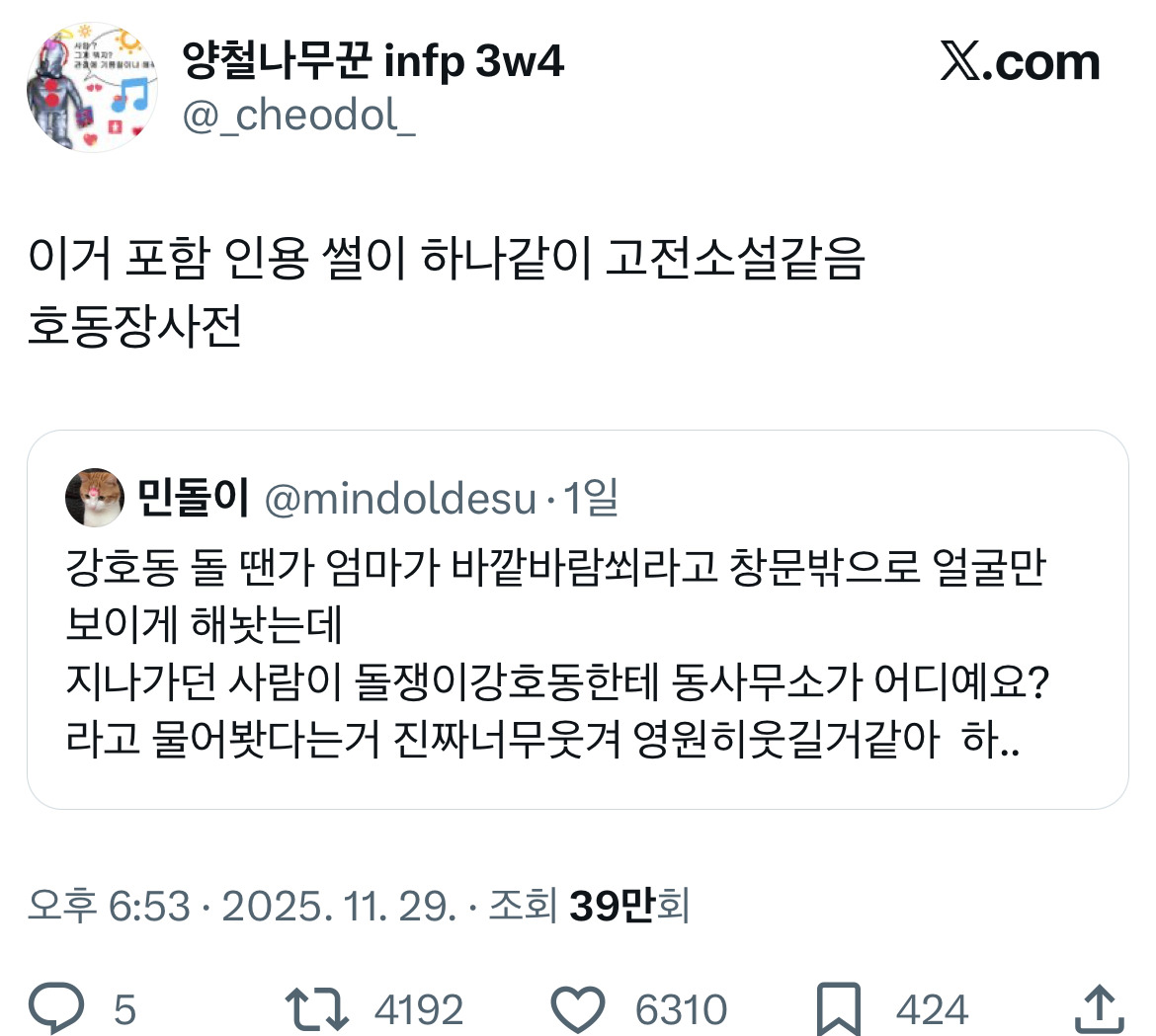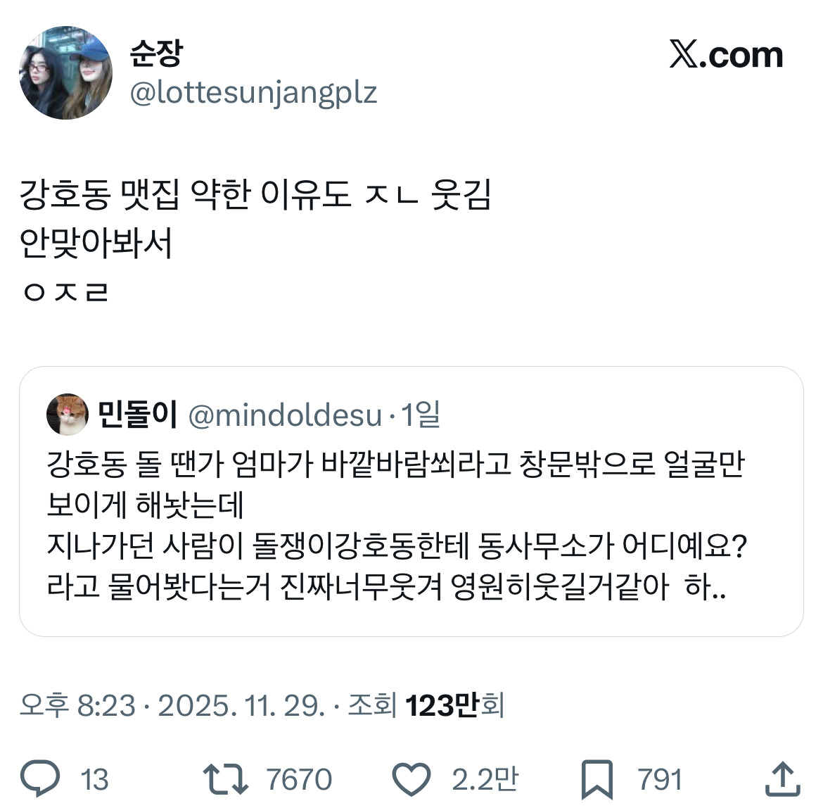 G 비회원 이슈 0 6 0 0 4시간전 강호동 트위터 모음.twt 출처 : https://m.bboom.naver.com/best/get?boardNo=9&postNo=4351552 0 0 이 글을 SNS로 공유하기