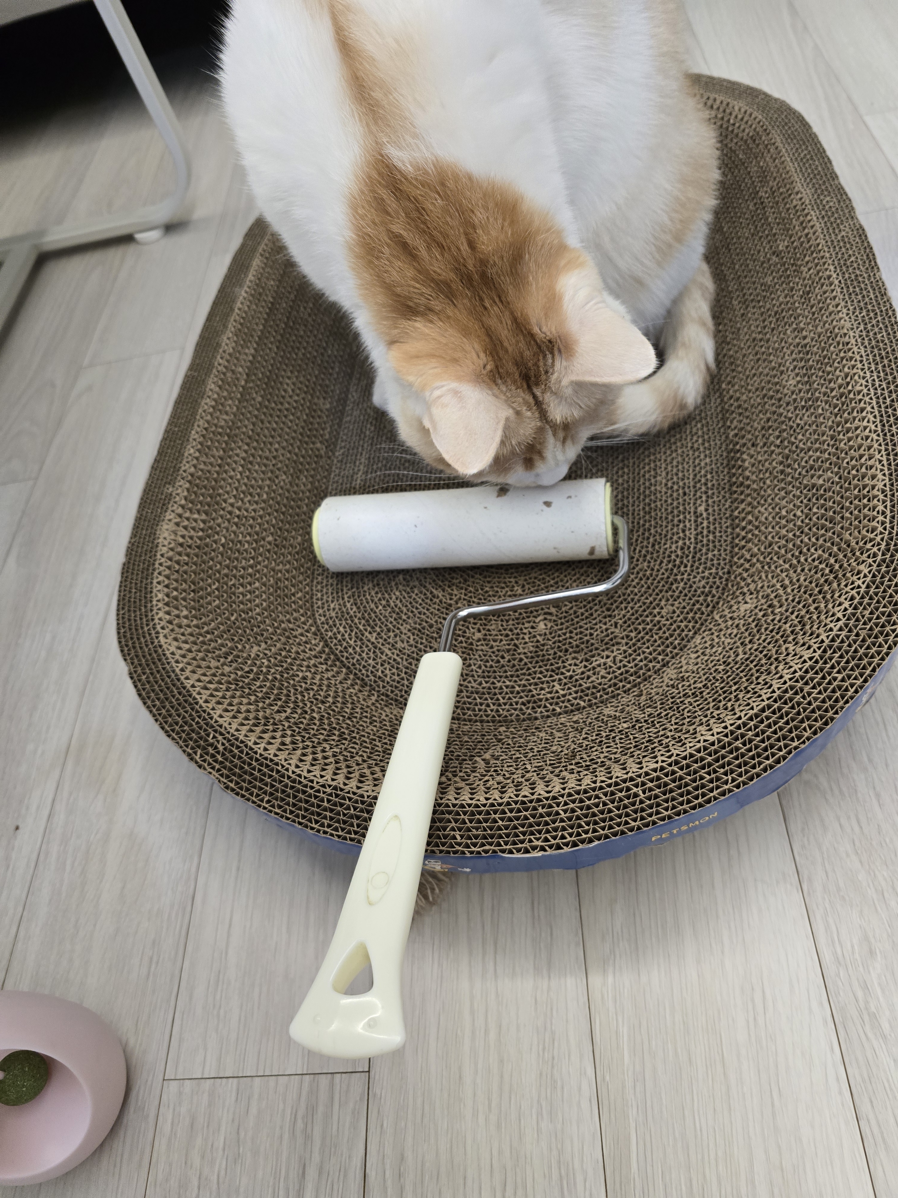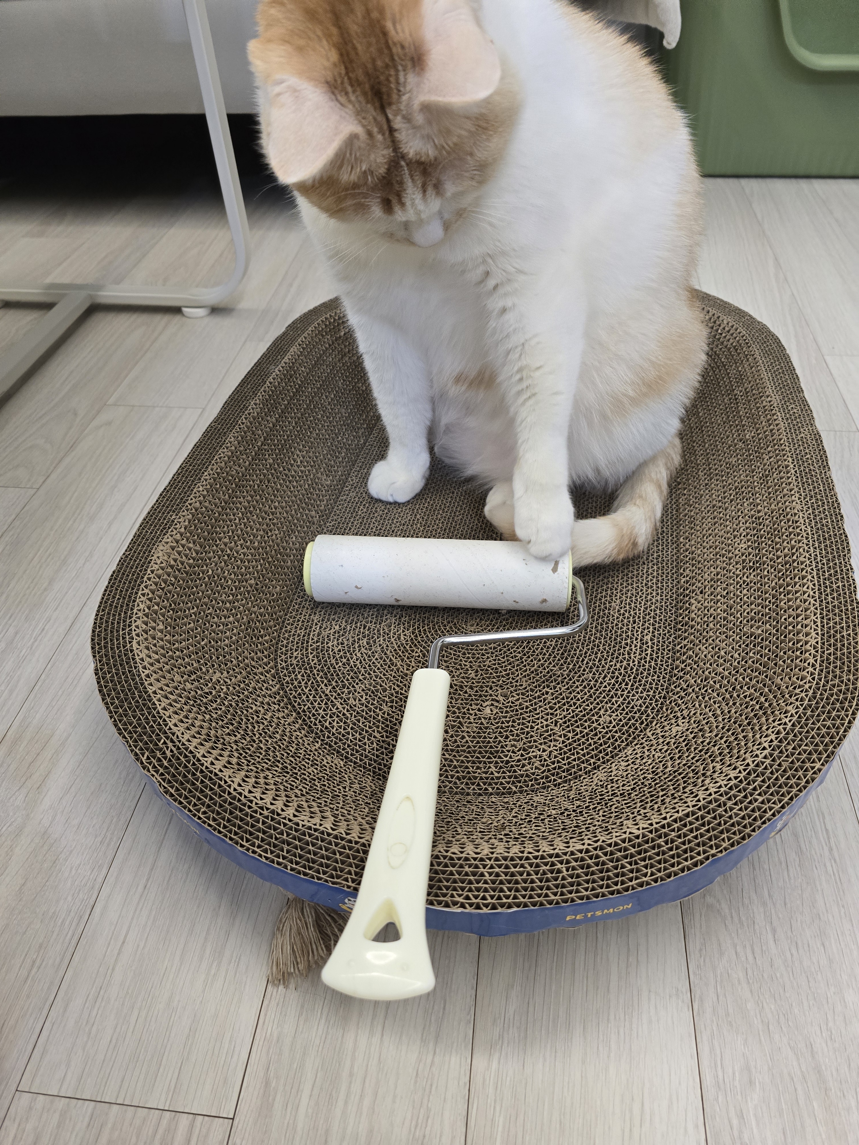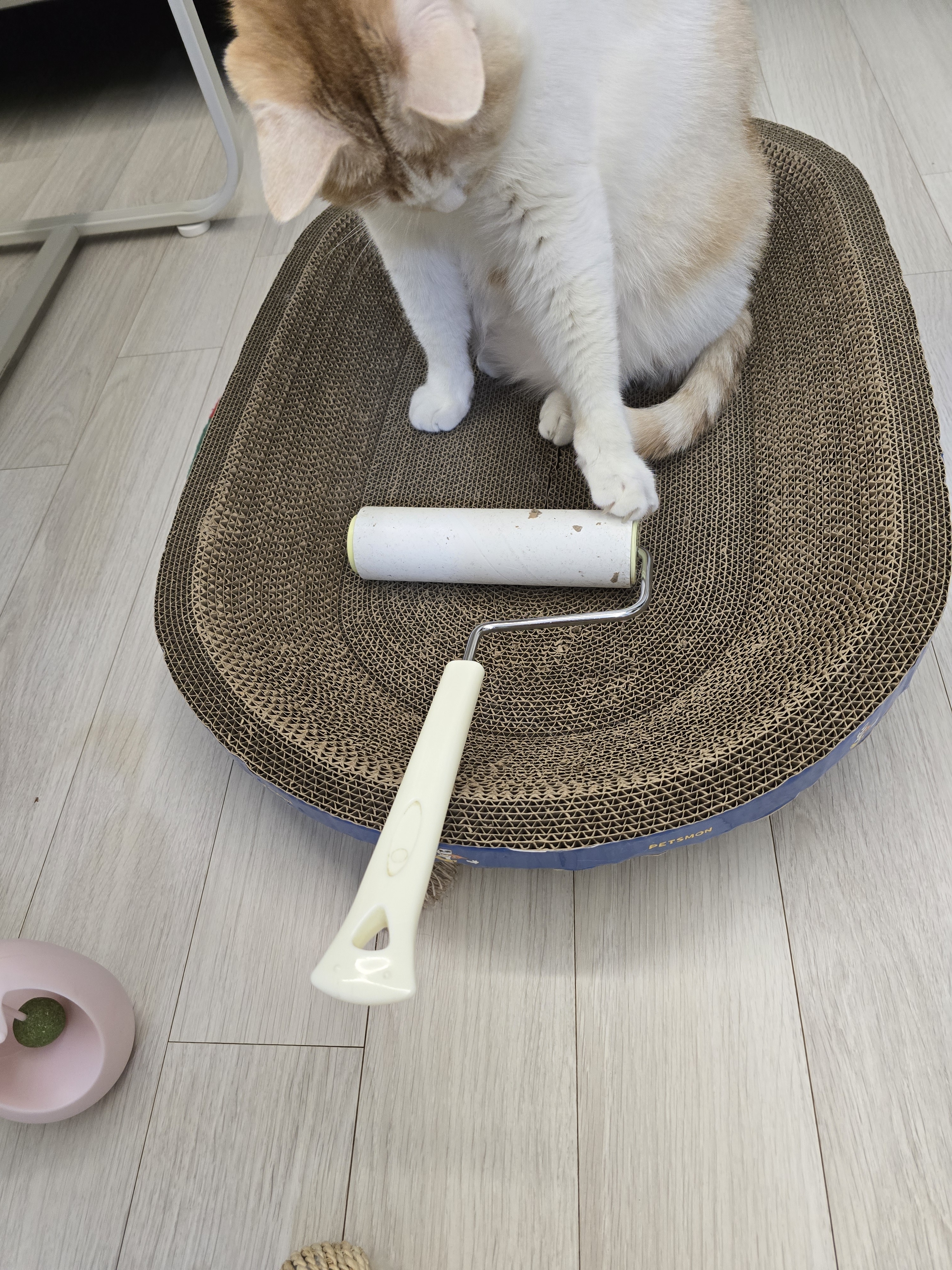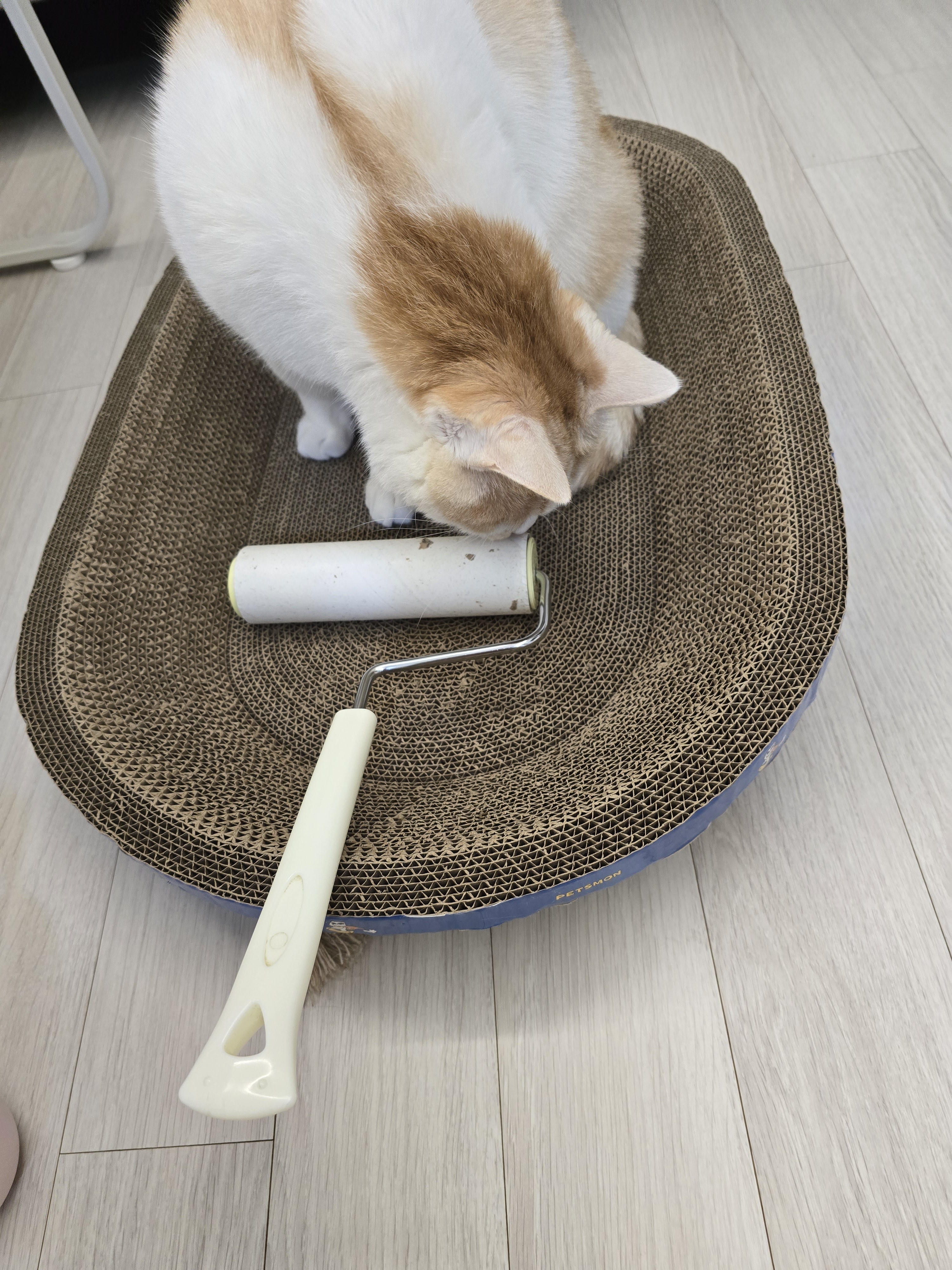 저녁 빗질하고 돌돌이했는데 얘 왜 내스크래처