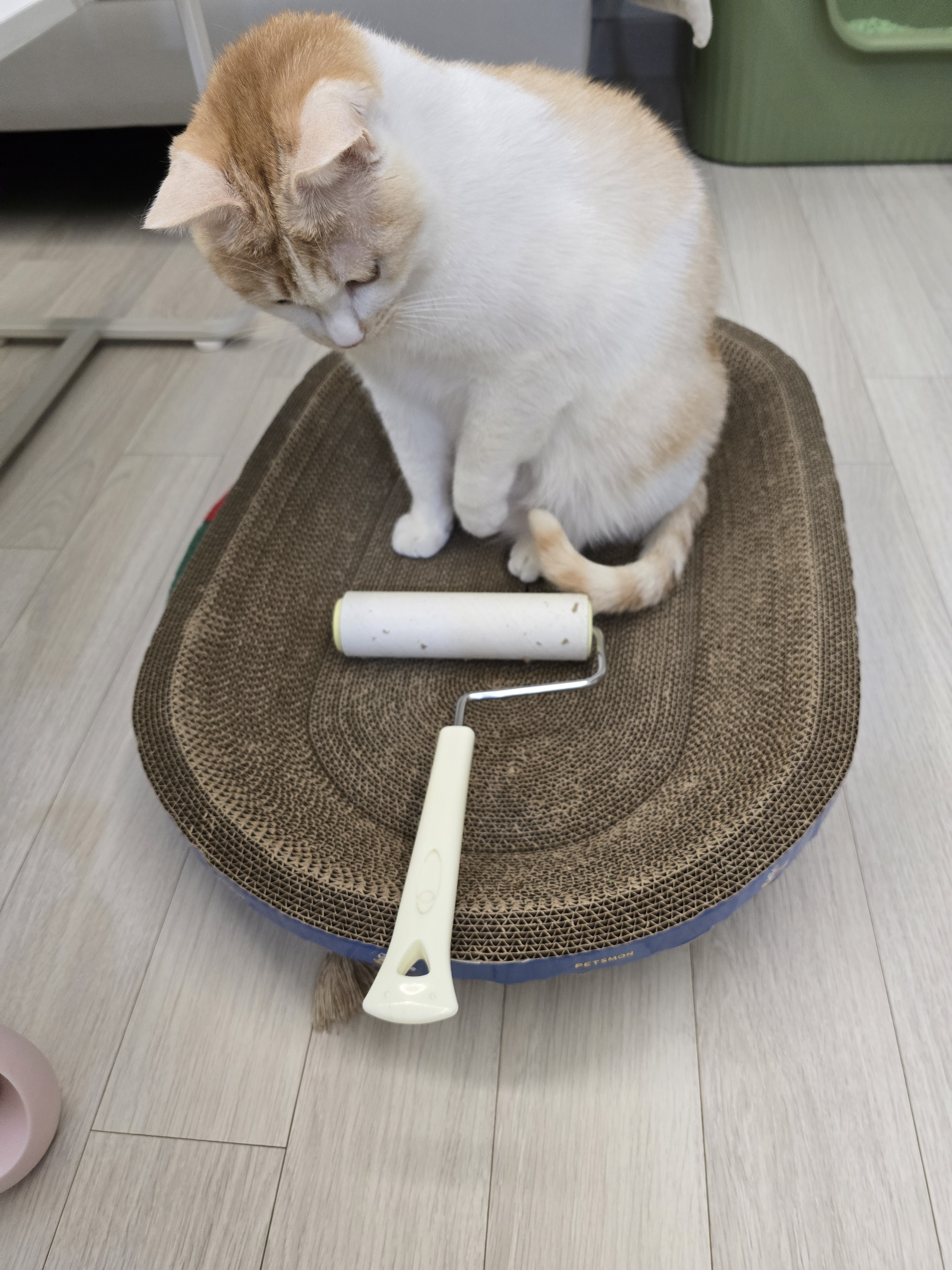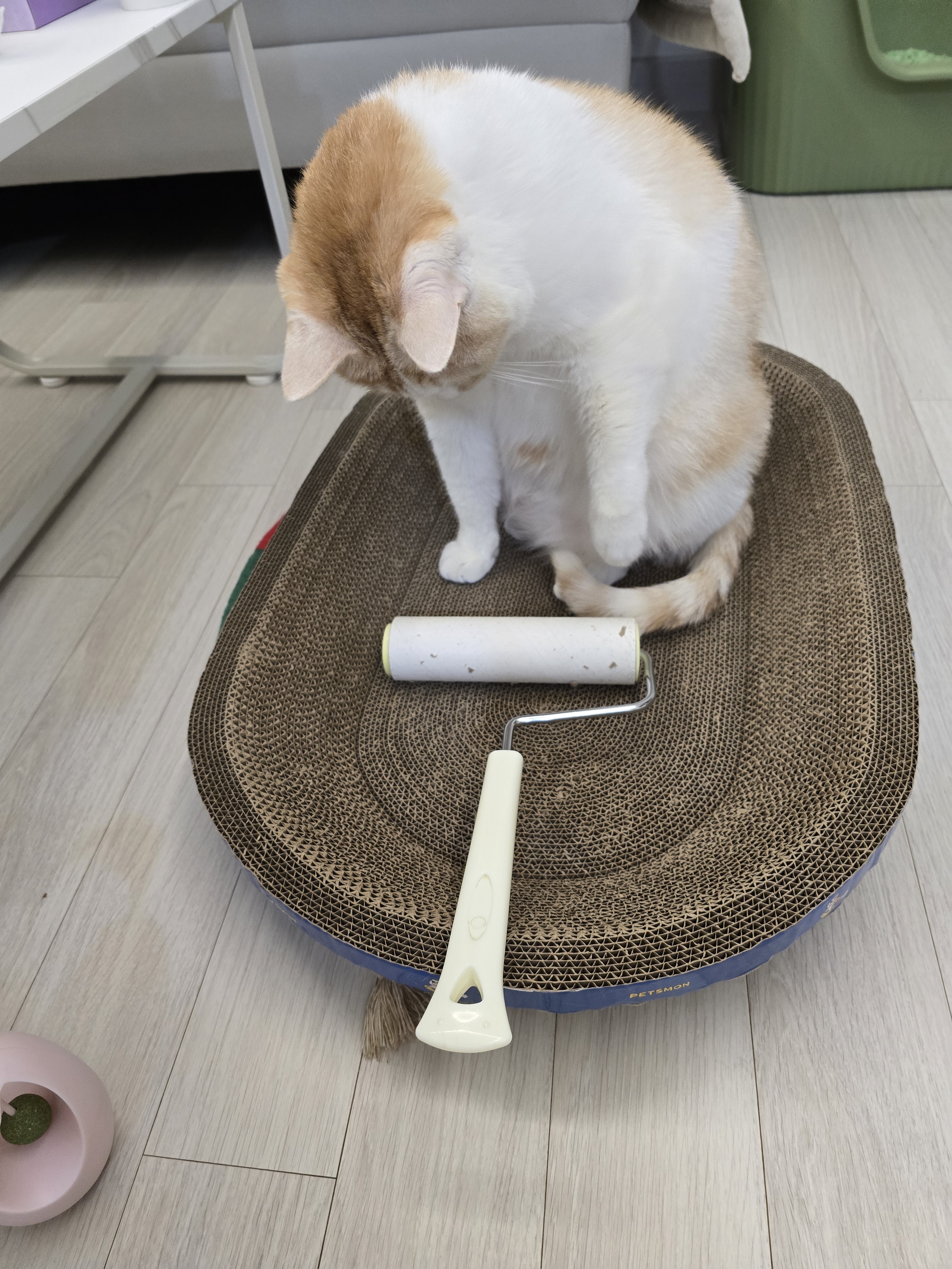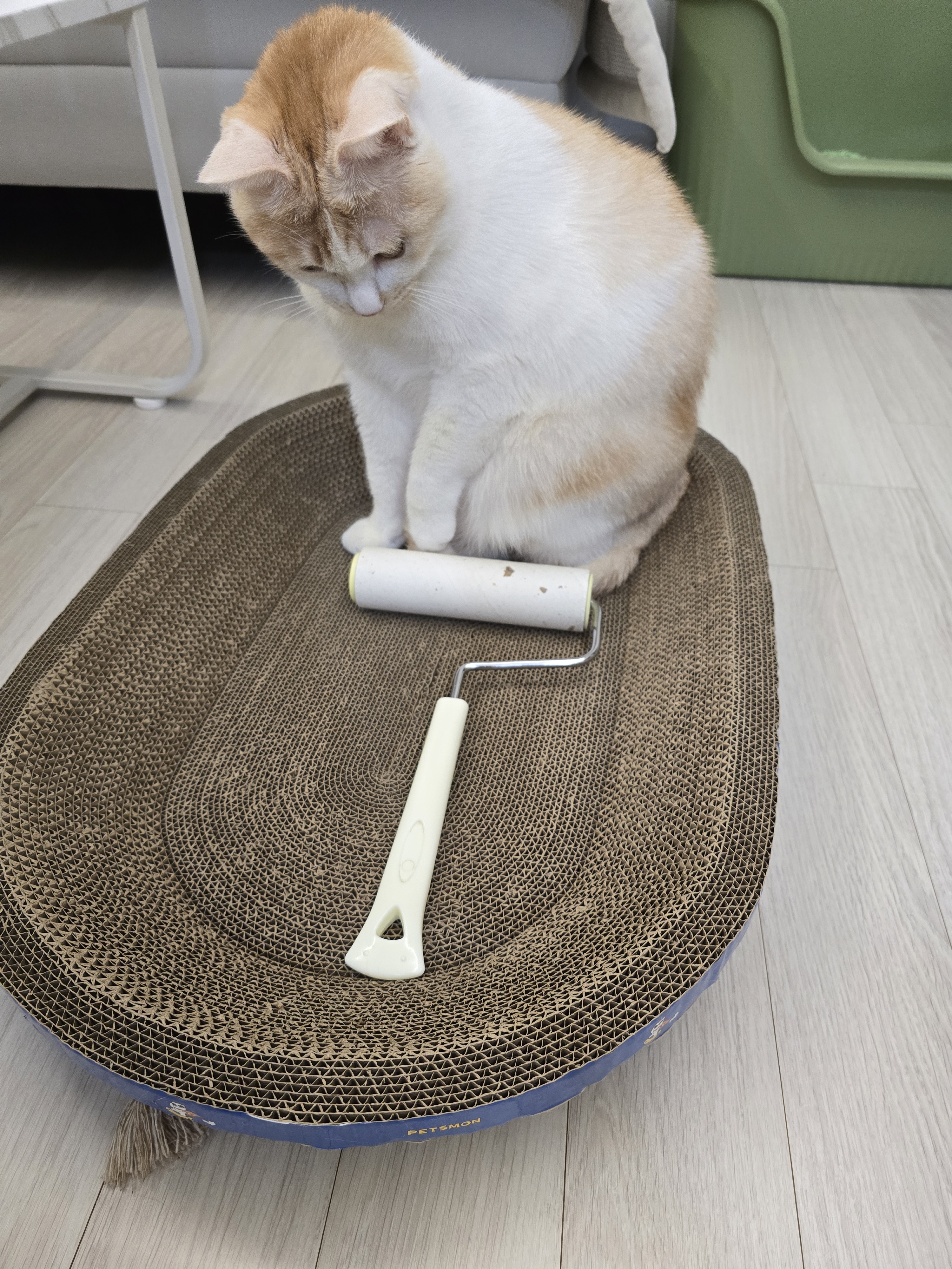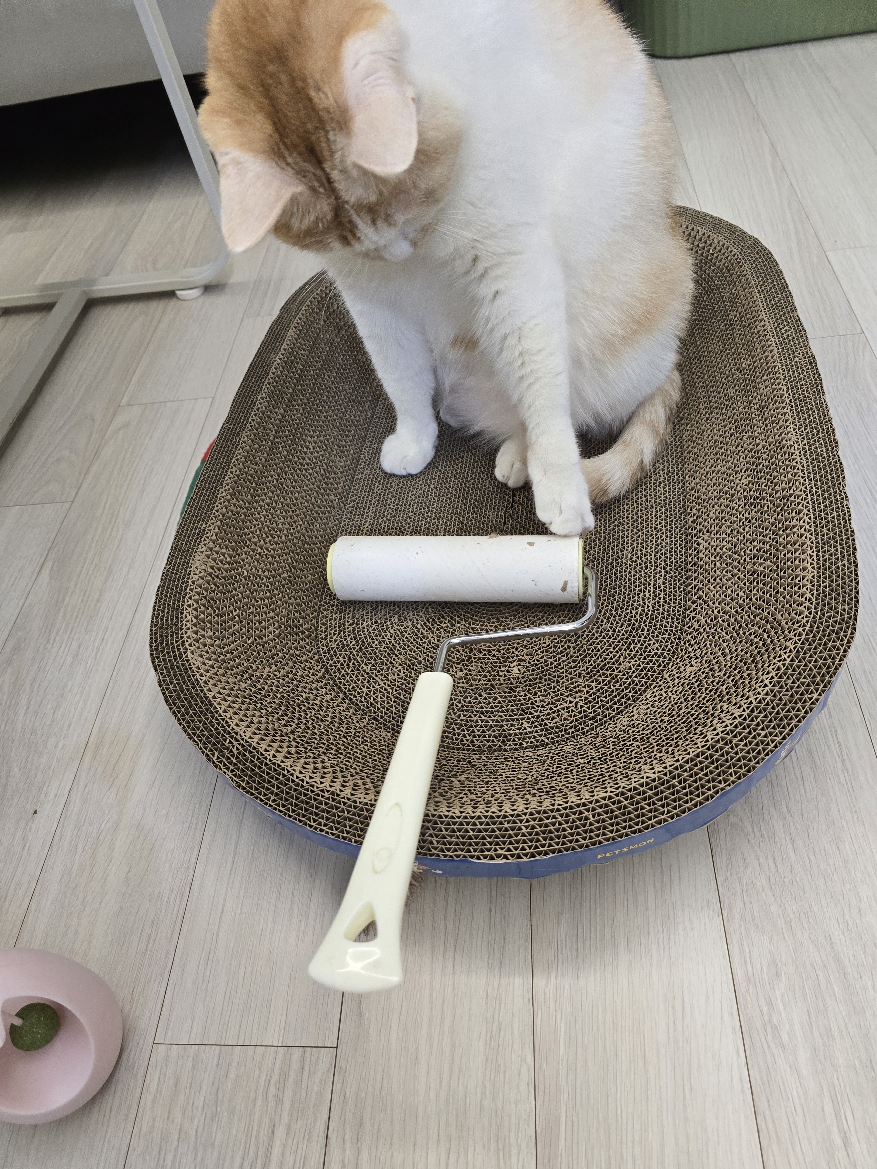 저녁 빗질하고 돌돌이했는데 얘 왜 내스크래처