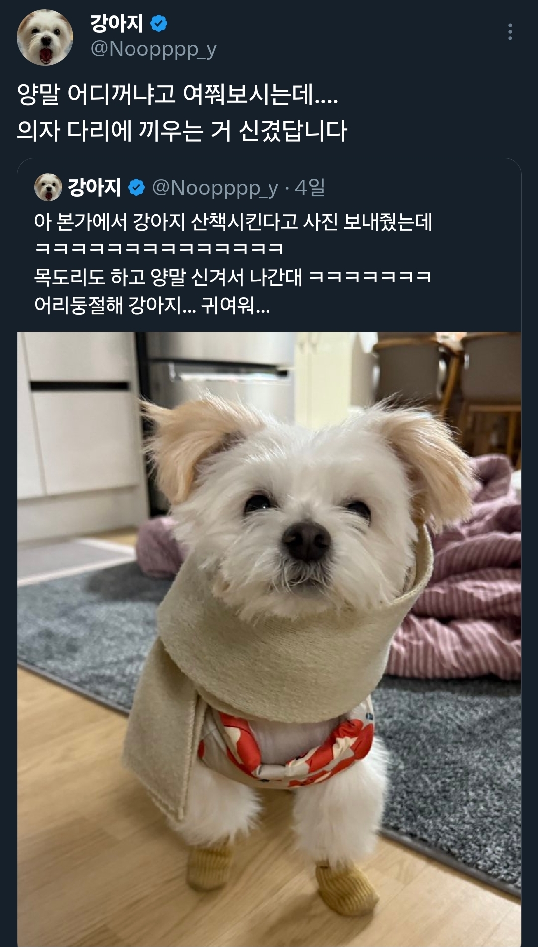 G 비회원 이슈 0 7 0 0 3시간전 양말 어디꺼냐고 여쭤보시는데....jpg 진촤 귀여워ㅠㅠㅋㅋㅋㅋㅋㅋㅋㅋㅋㅋ 출처 : https://m.bboom.naver.com/best/get?boardNo=9&postNo=4353849 0 0 이 글을 SNS로 공유하기