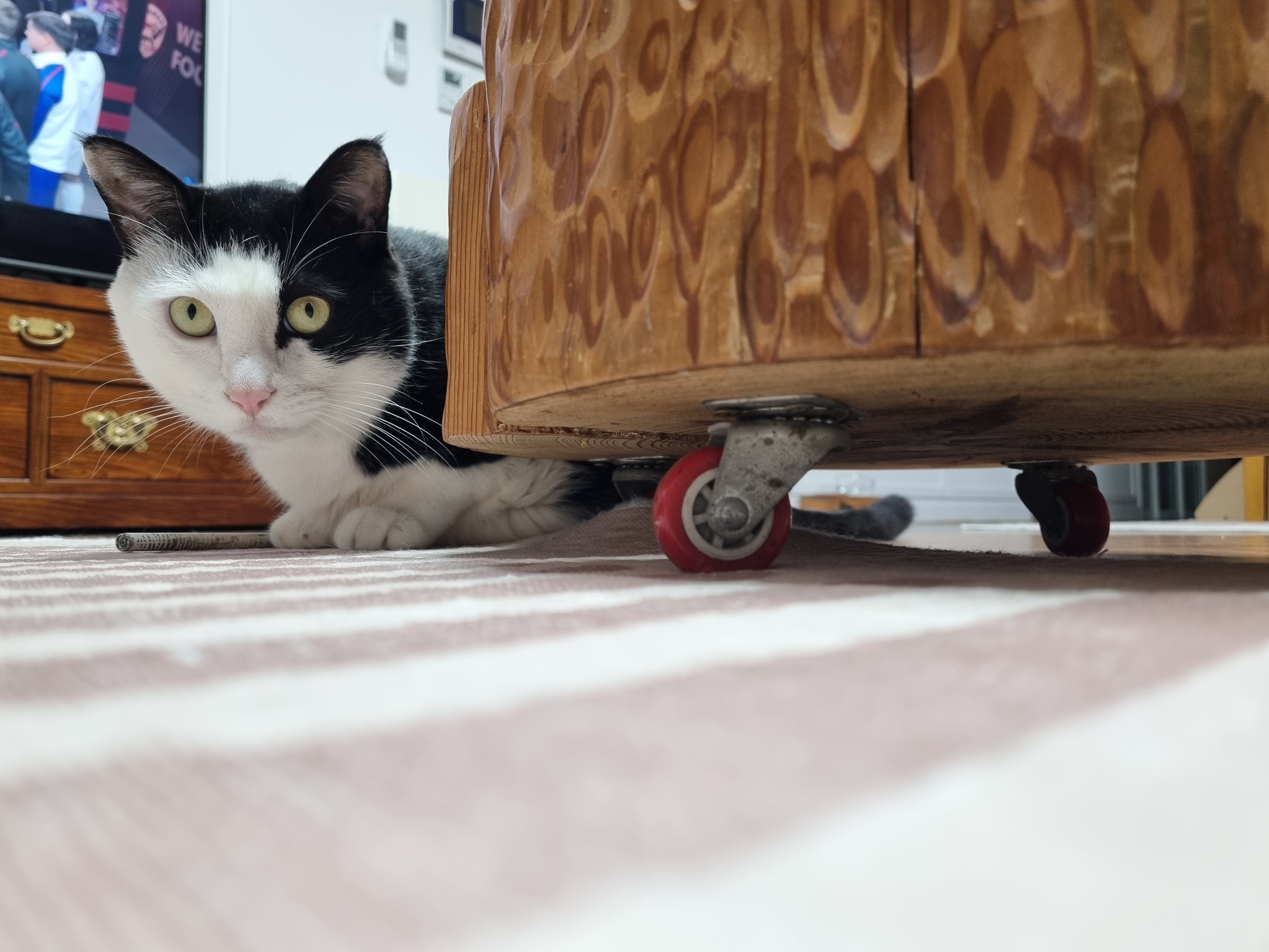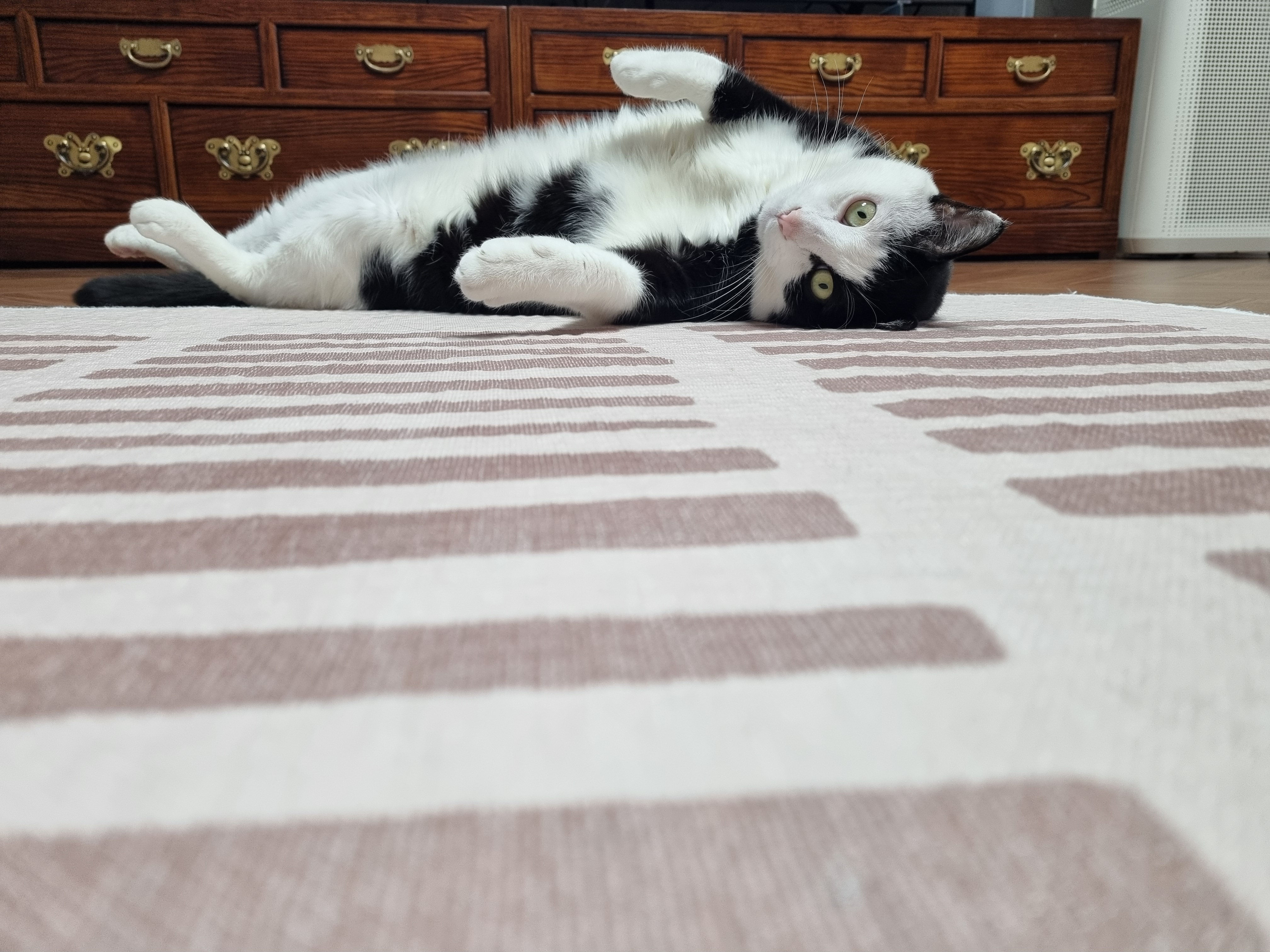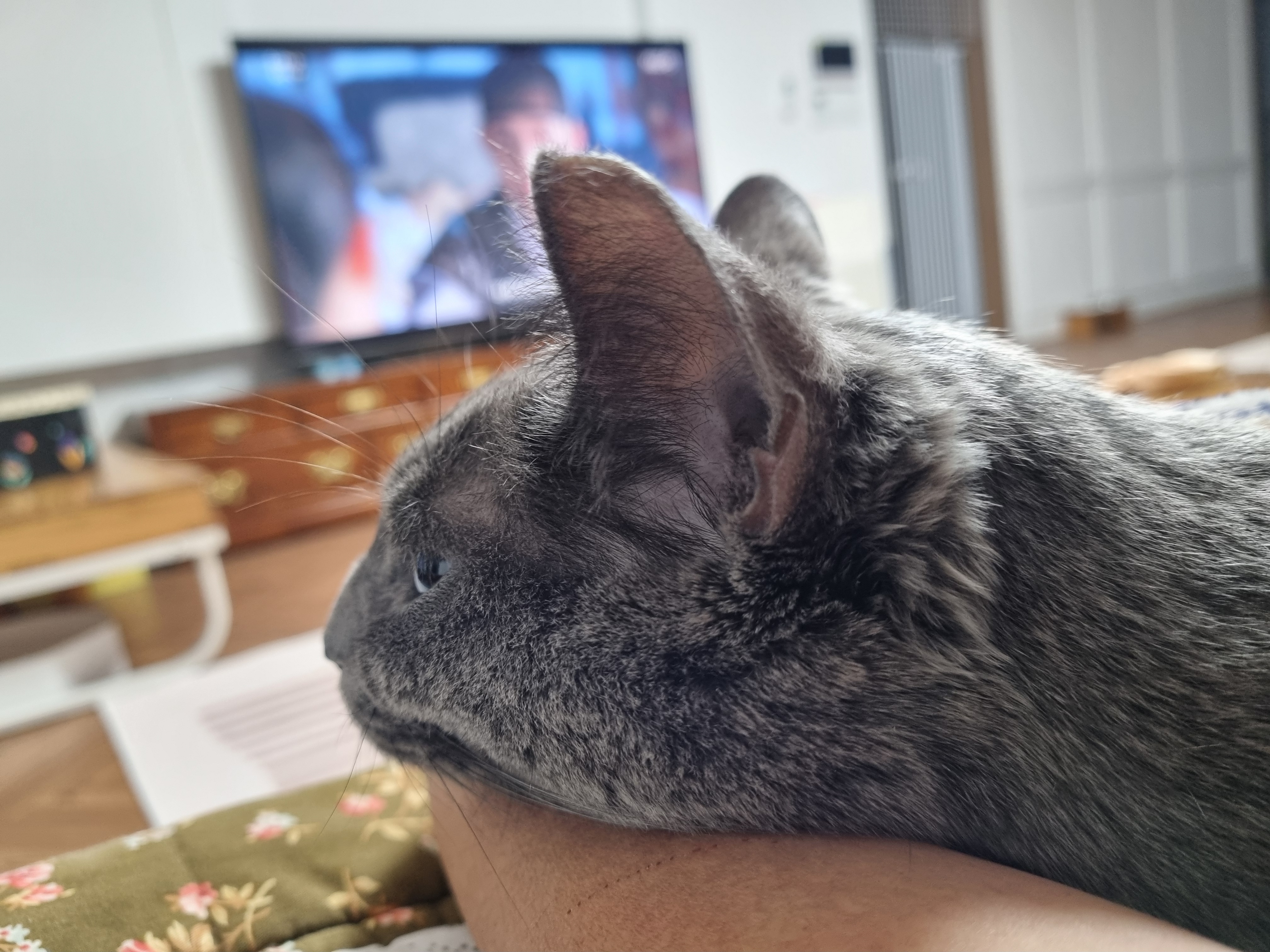 이녀석은 집사 팔을 괴고 엎드려 눈은 무엇을 보고 있을까?