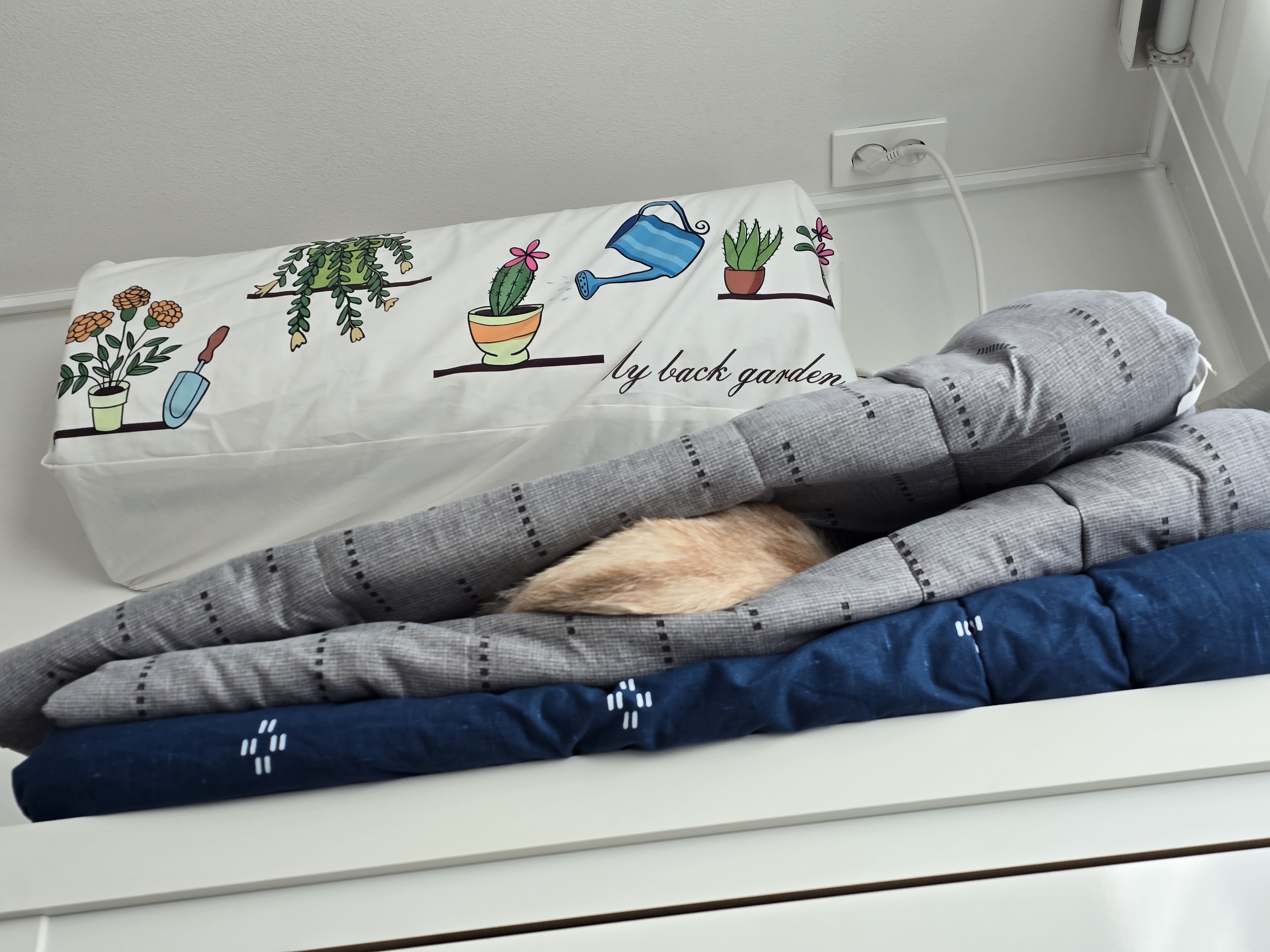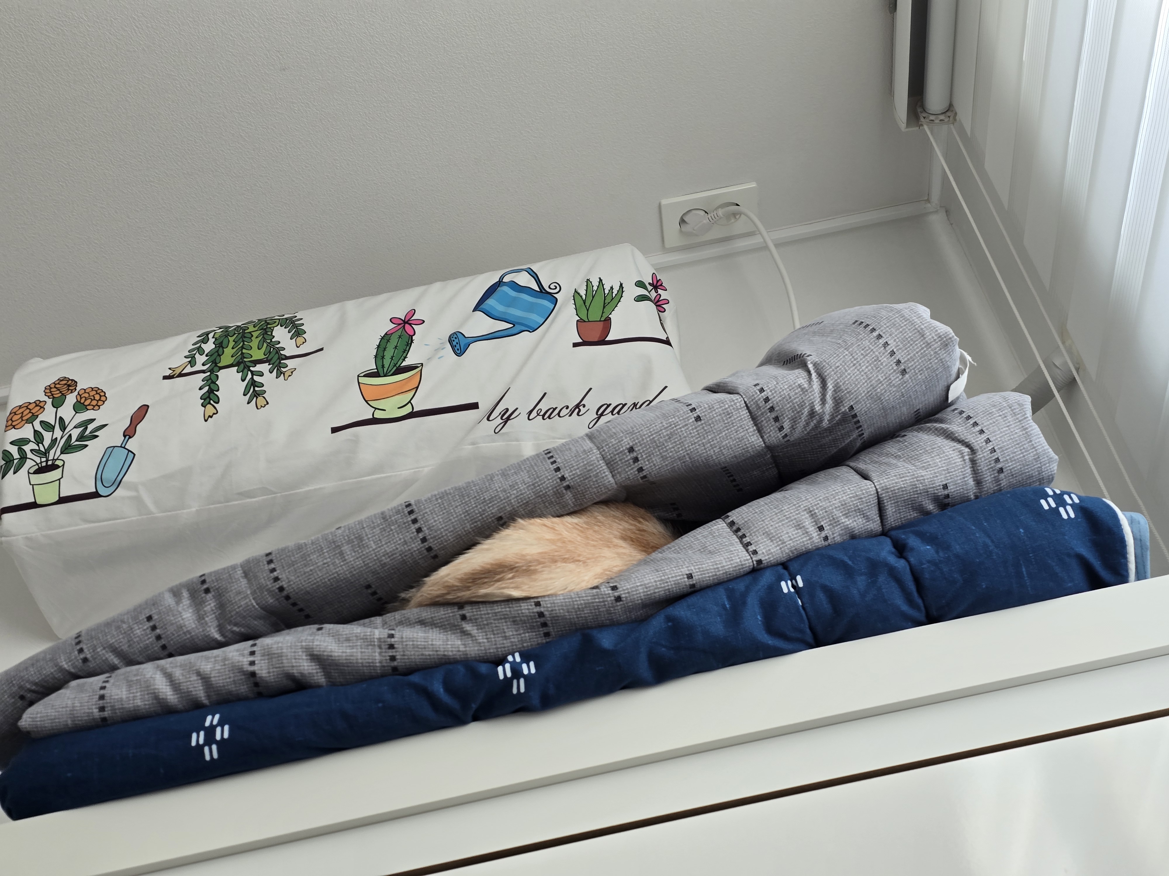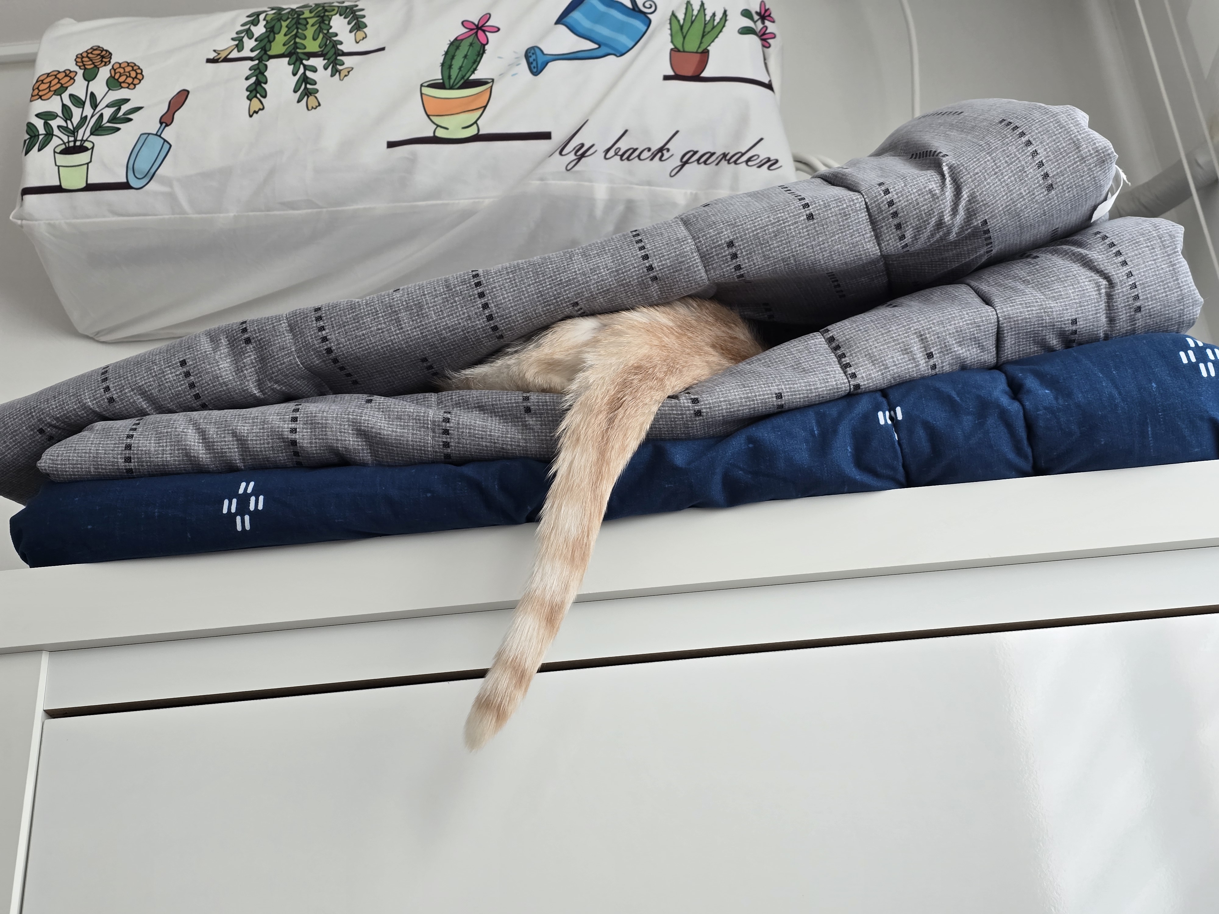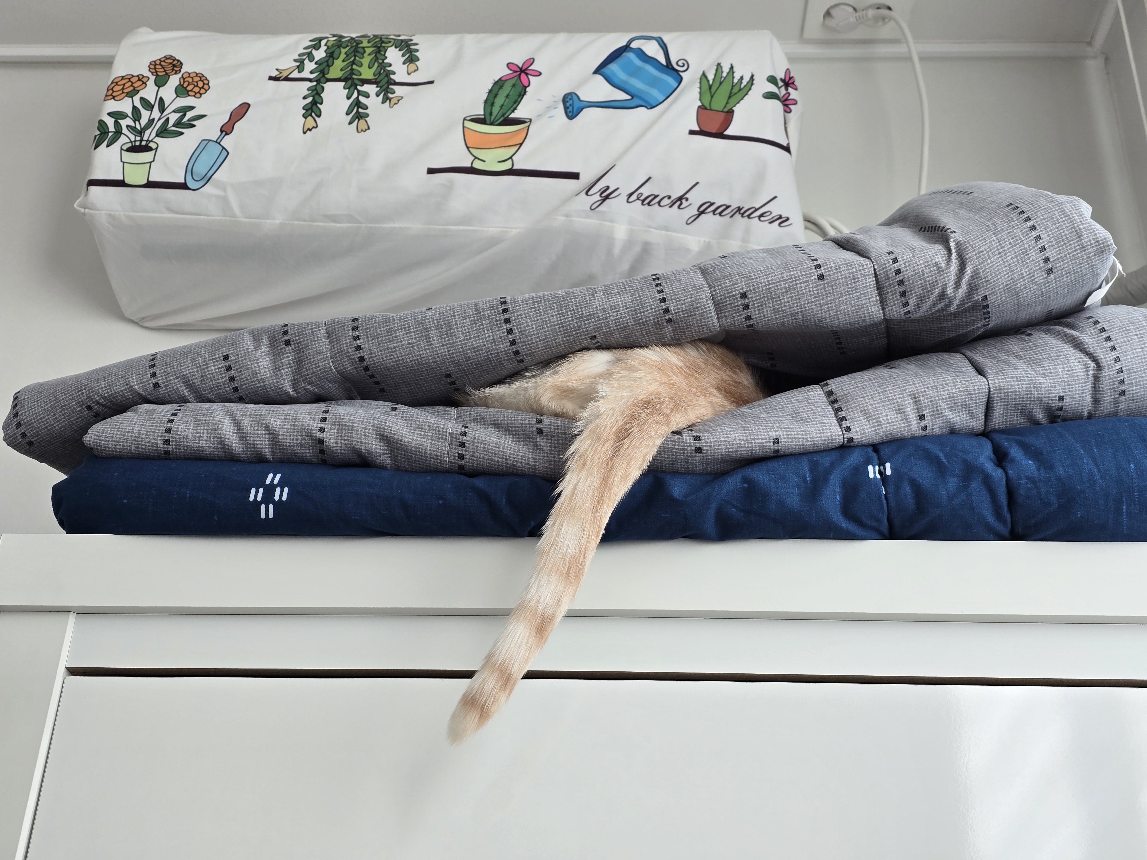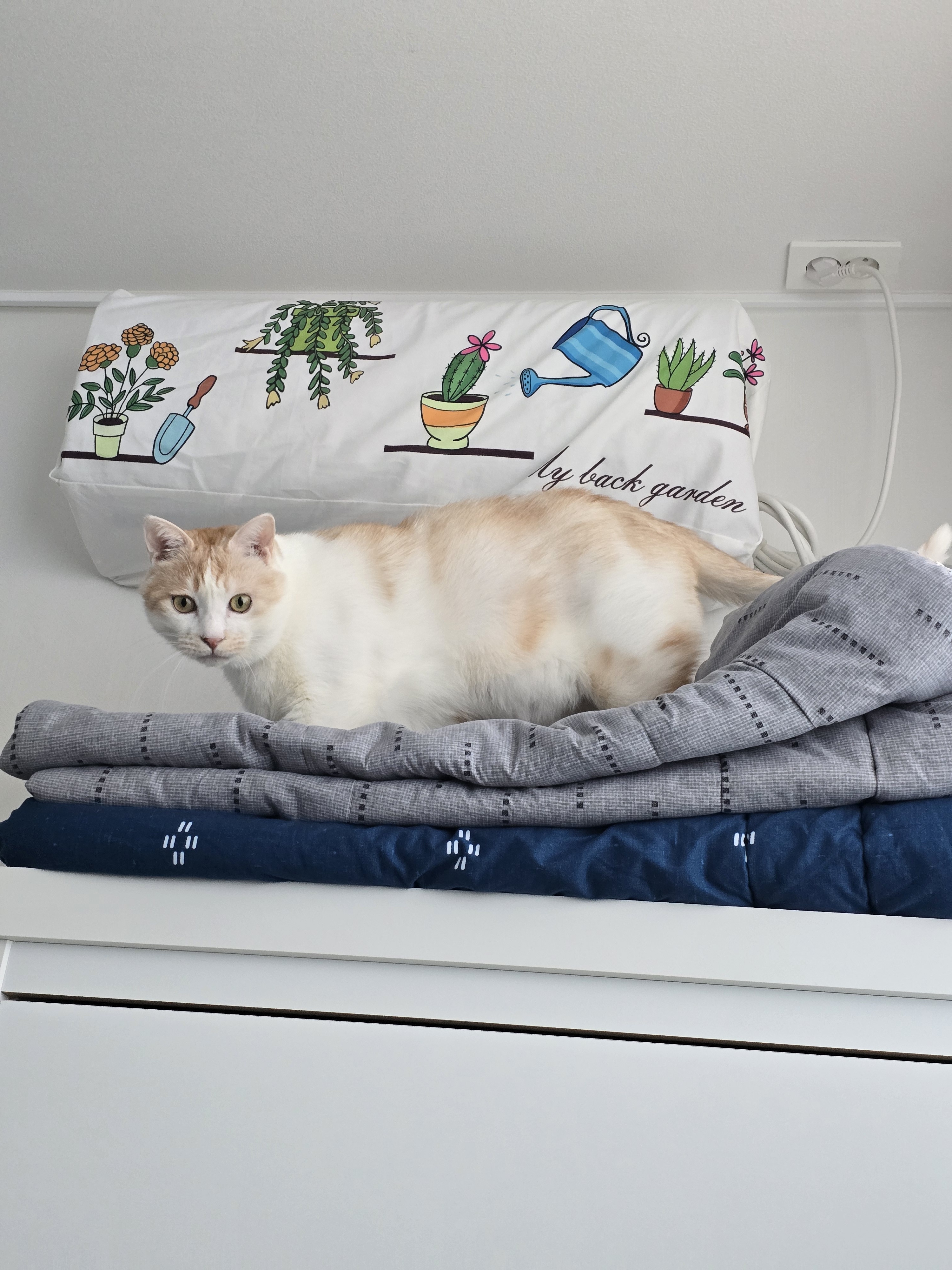 따로 잔 이불인데 서랍장 위에 올려놓으니 요즘 저기서