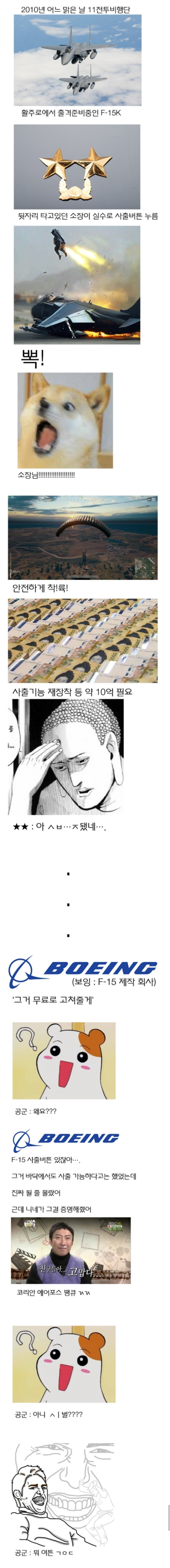 비회원 군사무기사진 0 719 0 0 2019.03.13 20:34 공군 역사상 가장 황당한 사고 소장이 F-5만 3000시간 넘게 탄 베테랑이라 F-15K는 잘 몰랐다고 함 보잉입장에서는 몰랐던 건 아니고 실제로 위험상황도 아닌데 저고도에서 10억짜리 버튼 누르는 사람이 없어서 필드데이터가 없던 와중에 필드데이터 생겨서 땡큐땡큐하는 입장이였던 것 0 0 이 글을 SNS로 공유하기