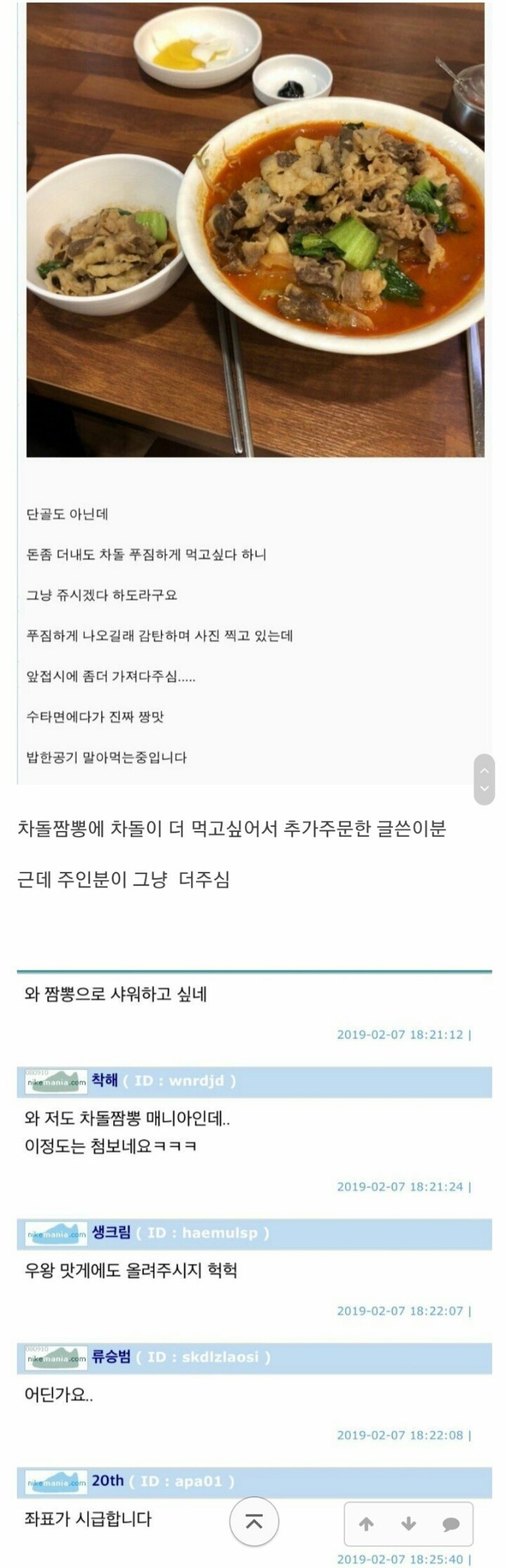 군인으로 착각하고 넉넉하게 주신 짬뽕집 사장님