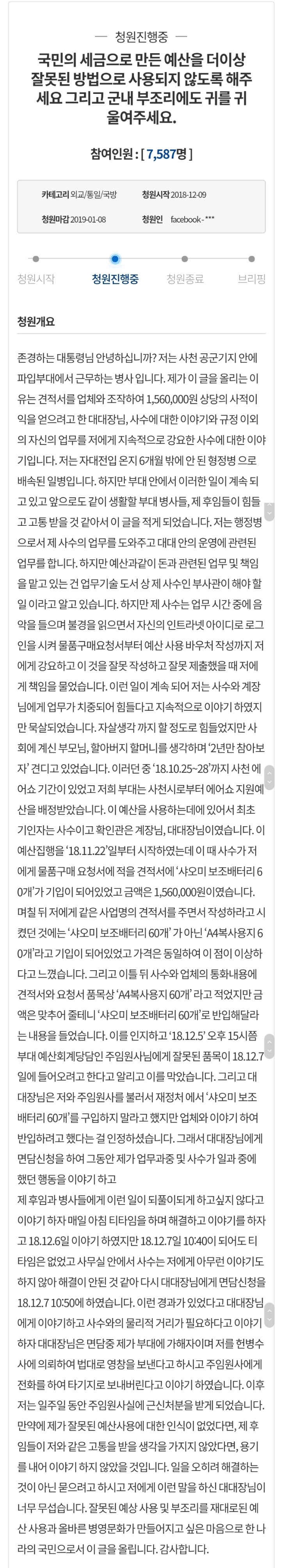 비회원 군사무기사진 0 755 0 0 2018.12.15 15:12 일병이 인생걸고 올린 청와대 청원. https://www1.president.go.kr/petitions/464583 요약 : 비리 잡았더니 영창 보낼거라고 협박 0 0 이 글을 SNS로 공유하기