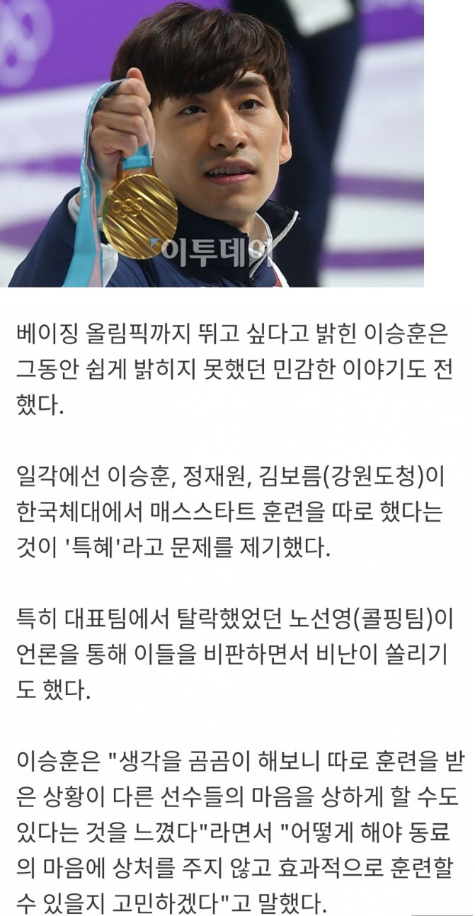 노선영 저격에 대한 이승훈 인터뷰.