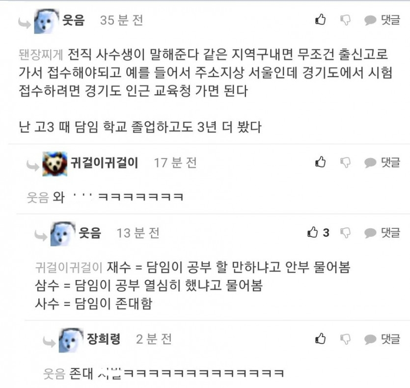 G 비회원 이슈 0 4 0 0 1시간전 4수생이 수능 접수하러 가면 존대ㅋㅋㅋㅋㅋㅋㅋㅋㅋ 저랬으면 나라면 진짜 열심히했을듯ㅋㅋㅋㅋ 출처 : https://m.bboom.naver.com/best/get?boardNo=9&postNo=4346587 0 0 이 글을 SNS로 공유하기