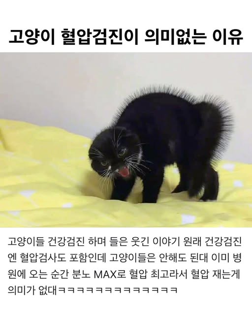 G 비회원 이슈 0 13 0 0 01.06 07:00 고양이들은 병원 혈압 검진이 의미 없는 이유.jpg 검사할 때 병원내원으로 인한 흥분을 감안한다고함.ㅋㅋㅋㅋㅋㅋㅋㅋㅋㅋㅋㅋㅋㅋㅋㅋㅋ 출처 : https://m.bboom.naver.com/best/get?boardNo=9&postNo=4356194 0 0 이 글을 SNS로 공유하기