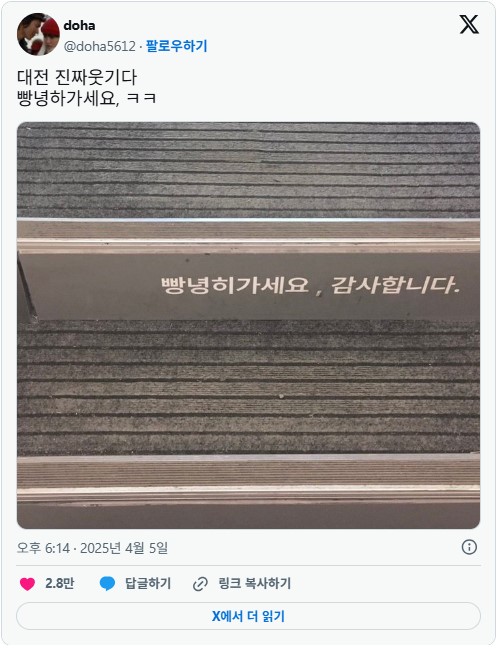 G 비회원 이슈 0 11 0 0 01.11 17:00 대전식 인사법.jpg ㅋㅋㅋㅋㅋㅋㅋㅋㅋㅋ댓글 센스 ㅋㅋㅋㅋㅋㅋㅋ 출처 : https://m.bboom.naver.com/best/get?boardNo=9&postNo=4357215 0 0 이 글을 SNS로 공유하기