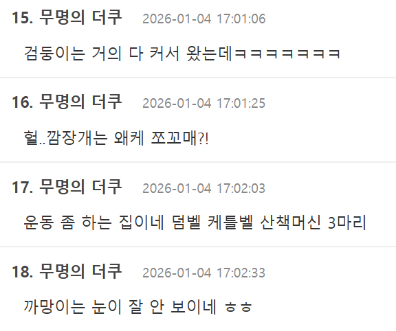 G 비회원 이슈 0 8 0 0 3시간전 미래를 알수없는 강아지들 귀엽다 ㅋㅋㅋ 출처 : https://m.bboom.naver.com/best/get?boardNo=9&postNo=4358346 0 0 이 글을 SNS로 공유하기