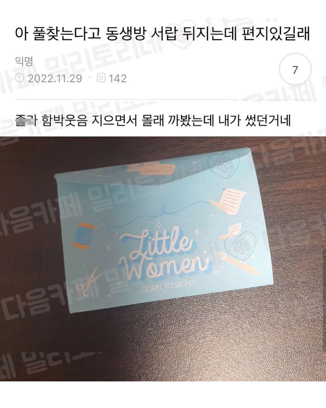 G 비회원 이슈 0 13 0 0 02.12 17:00 아 풀 찾는다고 동생방 서랍 뒤지는데 편지 있길래.jpg ㅋㅋㅋㅋㅋㅋ사이 좋은 남매 ㅋㅋㅋㅋㅋㅋ 출처 : https://m.bboom.naver.com/best/get?boardNo=9&postNo=4362505 0 0 이 글을 SNS로 공유하기