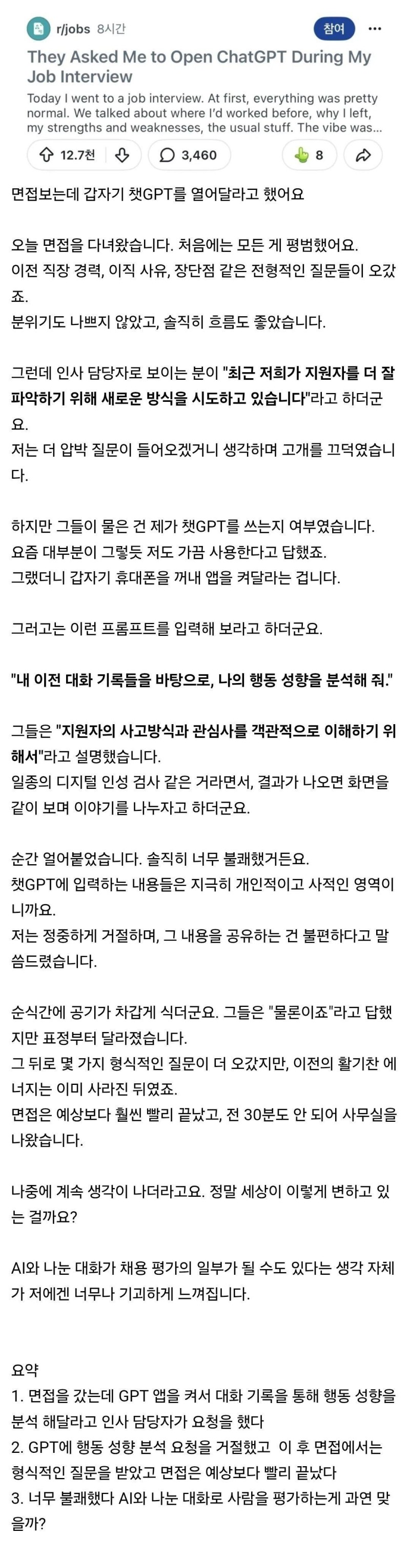 G 비회원 이슈 0 6 0 0 3시간전 레딧에서 추천 12000개 받은 면접썰 출처 : https://m.bboom.naver.com/best/get?boardNo=9&postNo=4367184 0 0 이 글을 SNS로 공유하기