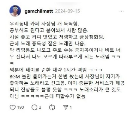 G 비회원 이슈 0 5 0 0 3시간전 우리동네 카페 사장님 개 똑똑함 출처 : https://m.bboom.naver.com/best/get?boardNo=9&postNo=4367318 0 0 이 글을 SNS로 공유하기