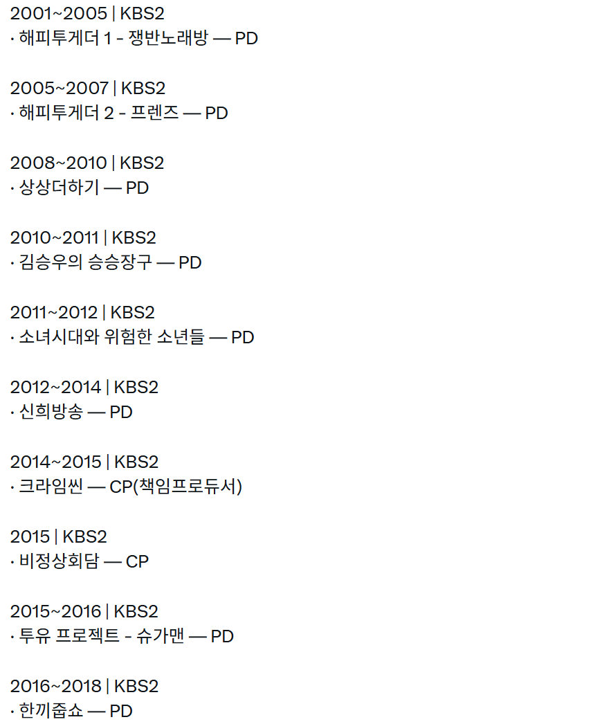 G 비회원 이슈 0 7 0 0 3시간전 흑백요리사 PD의 레전드 경력 해피투게더부터 비정상회담, 한끼줍쇼, 효리네 민박, 싱어게인, 크라임씬, 흑백요리사까지.. 시대별 인기 예능작들은 모두 이분이 다 하셨네 ㄷㄷㄷ 예능 천재십니까?? 출처 : https://m.bboom.naver.com/best/get?boardNo=9&postNo=4363594 0 0 이 글을 SNS로 공유하기