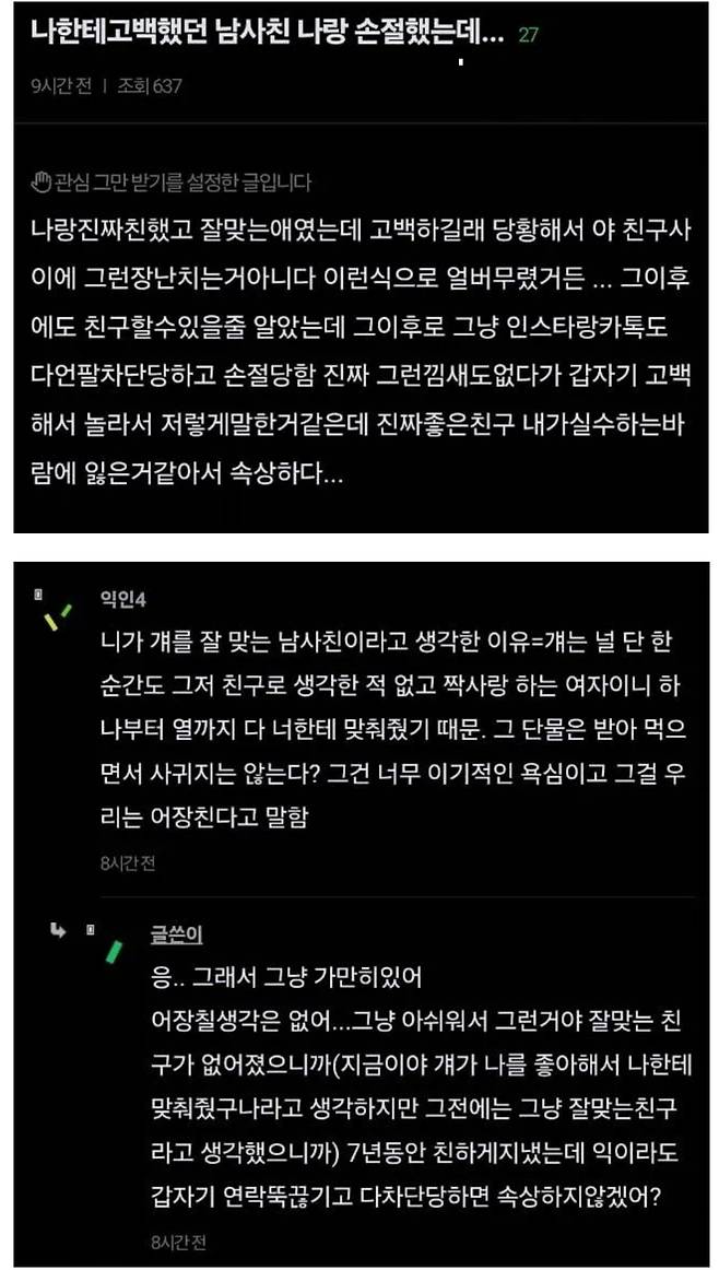 G 비회원 이슈 0 4 0 0 2시간전 어느 여자가 진짜 잘 맞는 남사친한테 손절 당한 이유 7년 만난 사이라고 하네요 출처 : https://m.bboom.naver.com/best/get?boardNo=9&postNo=4371930 0 0 이 글을 SNS로 공유하기