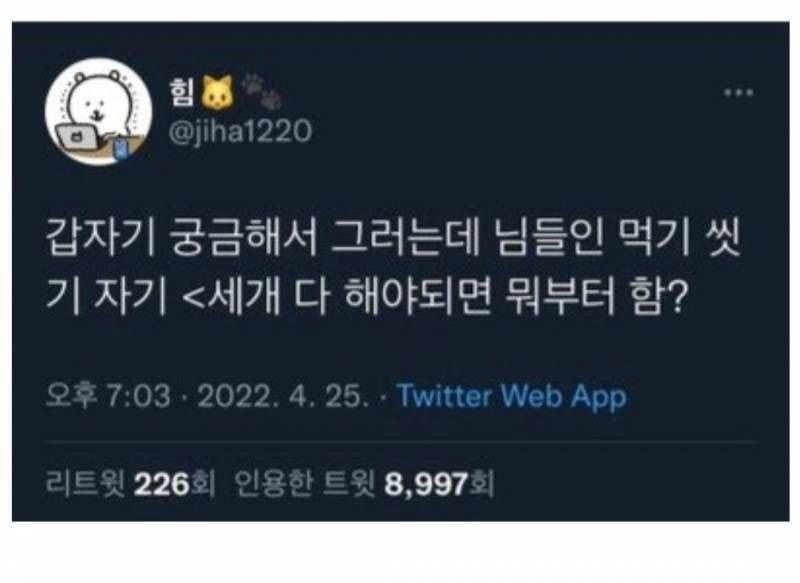 엄청 배고프고, 더러워서 찝찝하고, 피곤하면 뭐부터 할 거야??